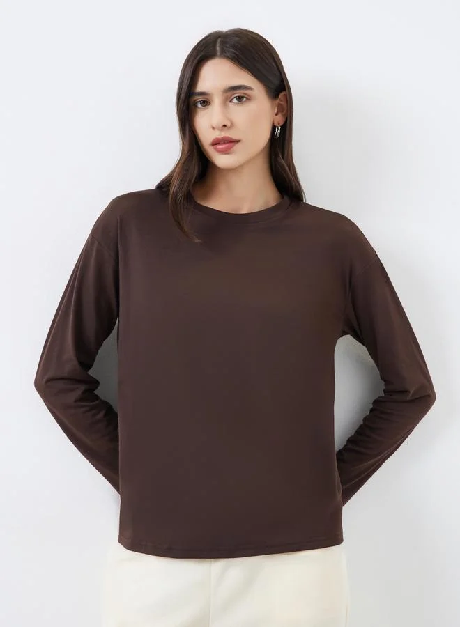Styli Textured Regular Fit Sleeve Slit Detail Top