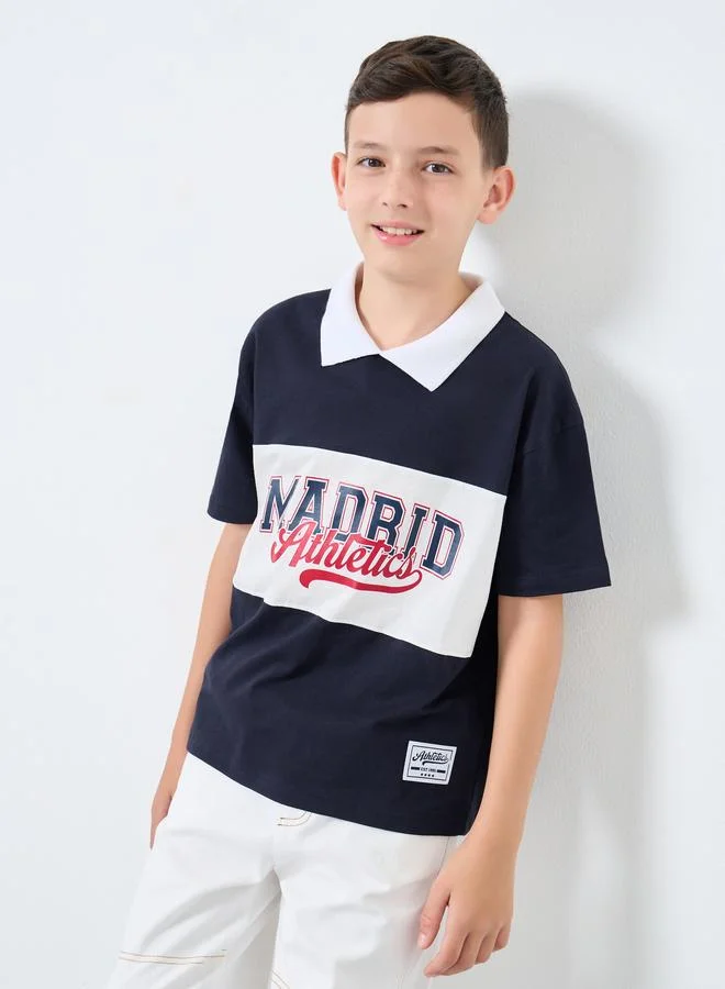 Embroidered Slogan Relaxed Fit Round Neck T-Shirt