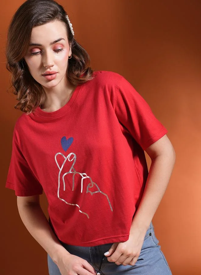 Styli Red Printed Chest Pocket Striped Oversized Shirt