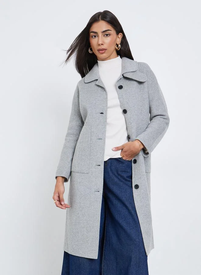 Styli Grey Midi Button Coat