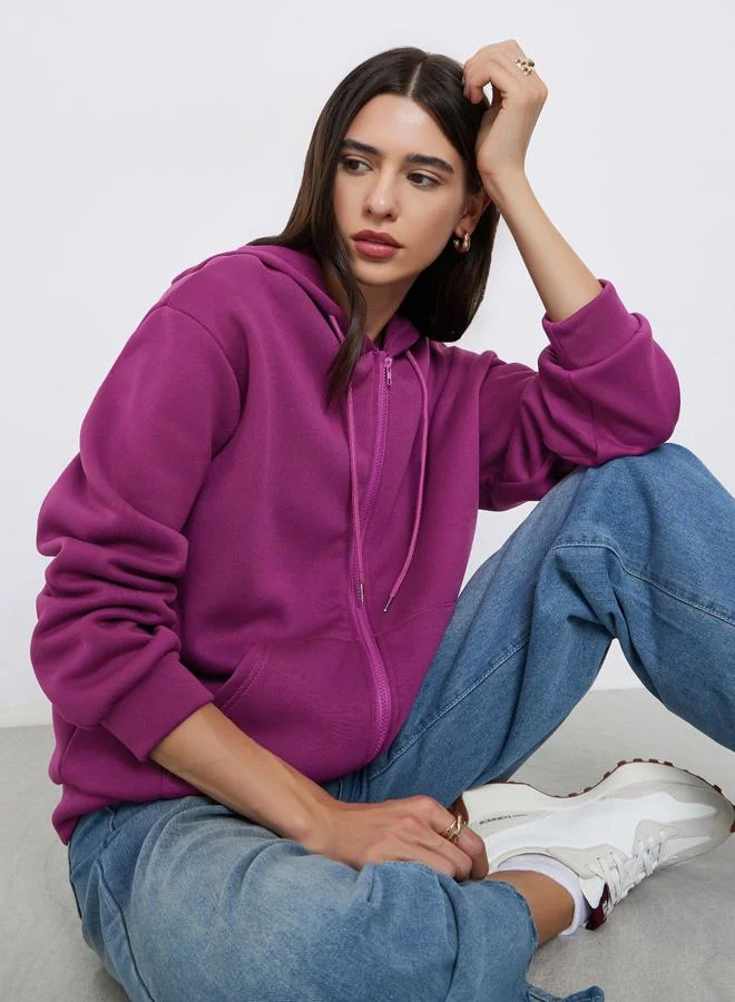 Styli Lilac Typography Print Kangaroo Pocket Hoodie