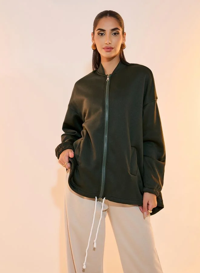 Relaxed Fit High Neck Jacket with Mesh Lining
