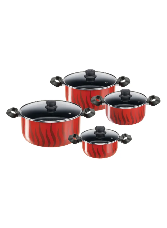 TEFAL Stewpots 8 PCS Set 18/22/26/30 cm |Tempo Flame Cookware | Safe non stick coating |Made in France | Cooking Lid 4 PCS| Boiling Stewing recipe| 2 Years Warranty |C3079082