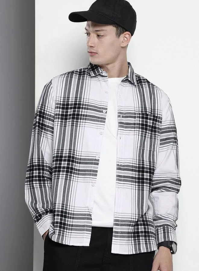 Men Relaxed Fit Checked Cutaway Collar Full Sleeves Shirt