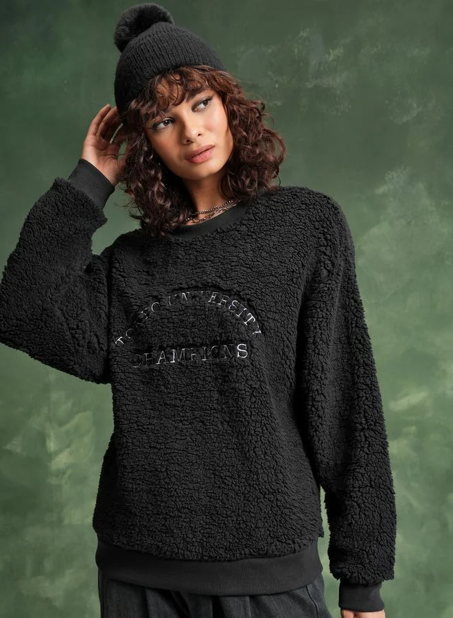 Tokyo Talkies Textured Drop Shoulder Oversized Sweatshirt