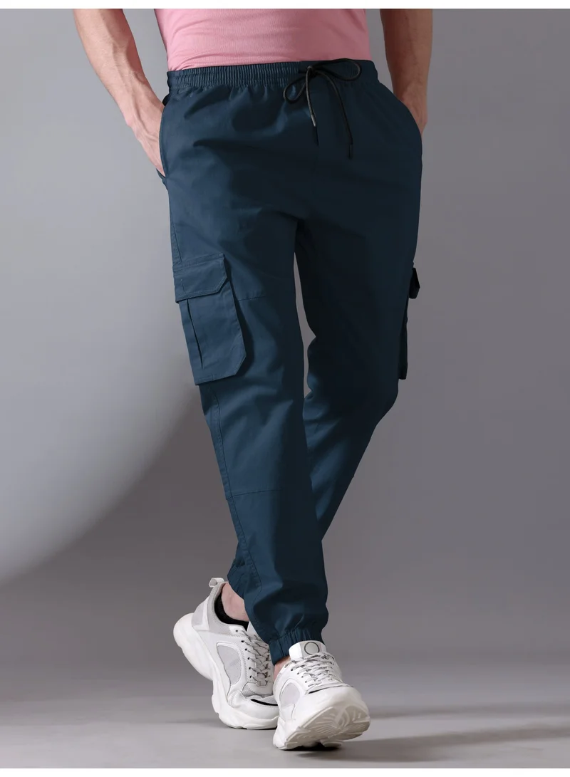 Smoky Blue Cotton Cargo Joggers