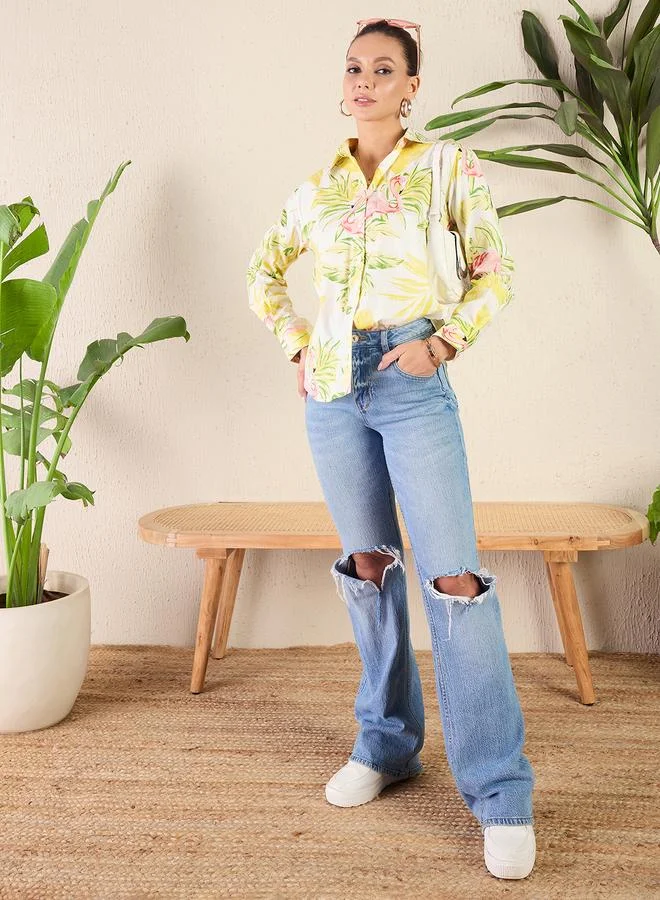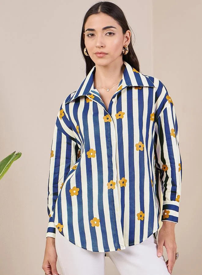Blue Plain Cotton Shirt and Shorts Co-Ords