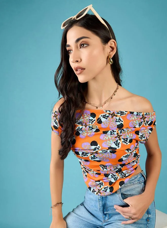 Floral Print Dhoti Jumpsuit with Attached Dupatta