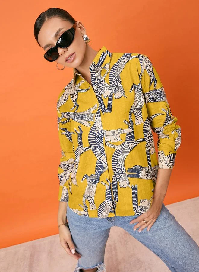 Green Plain Cotton Shirt and Shorts Co-Ords