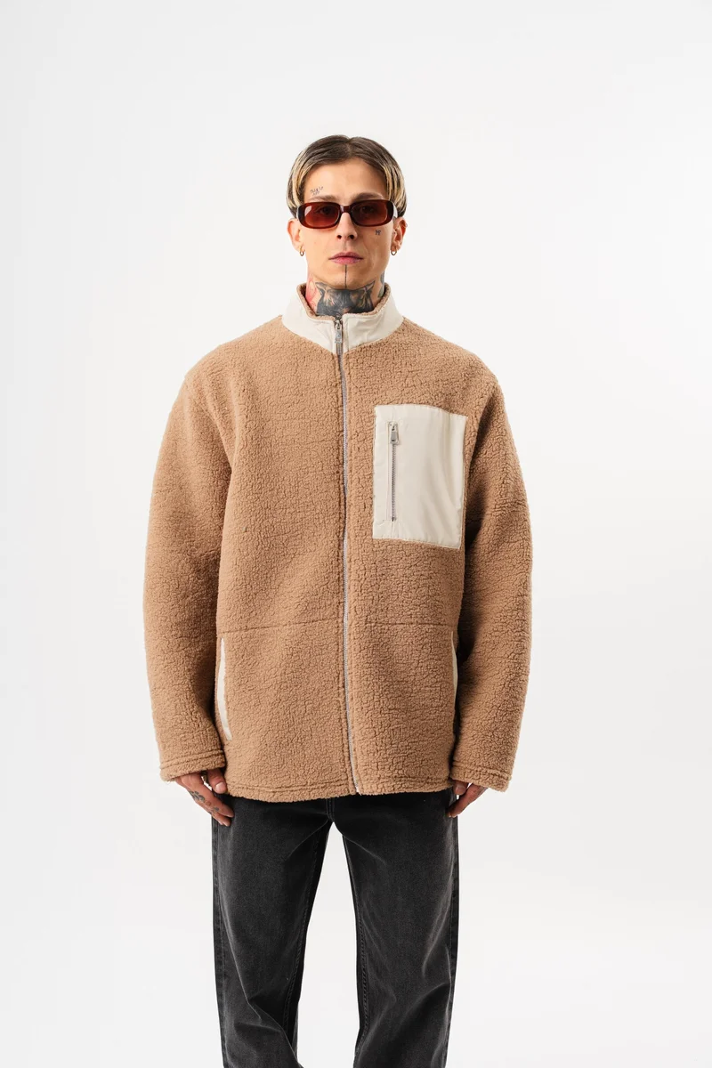 Men's Zip Oversize Teddy Jacket Brown