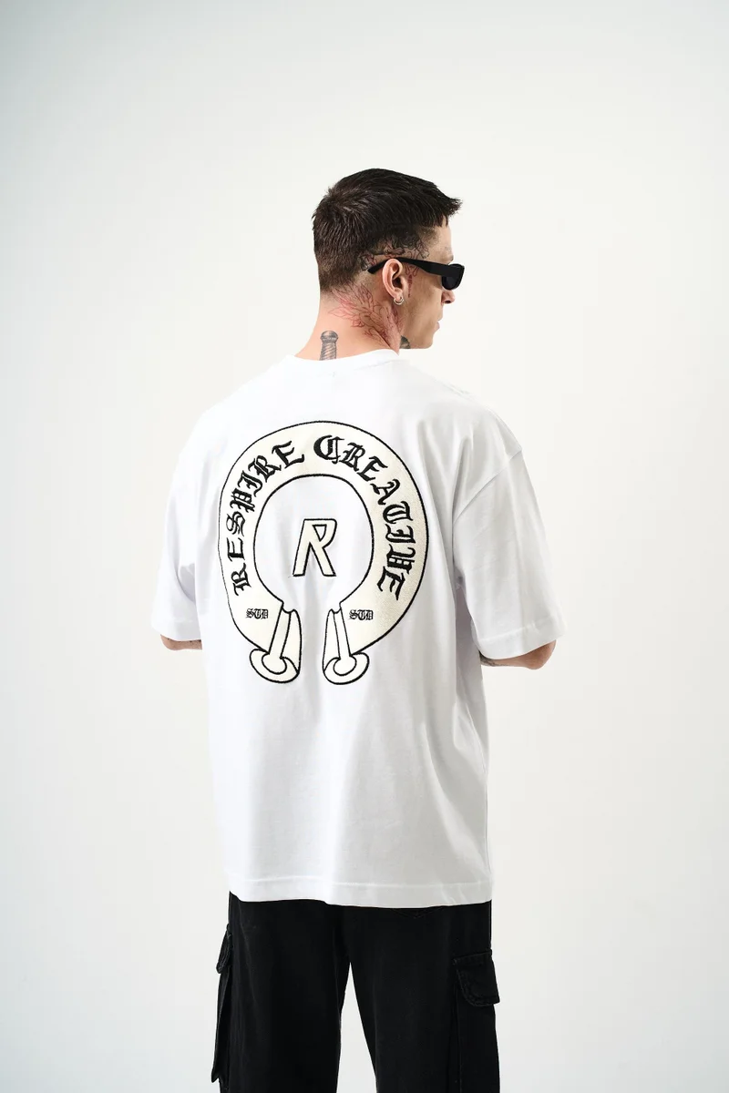 Men's R Creative Embroidered Oversize T-Shirt White