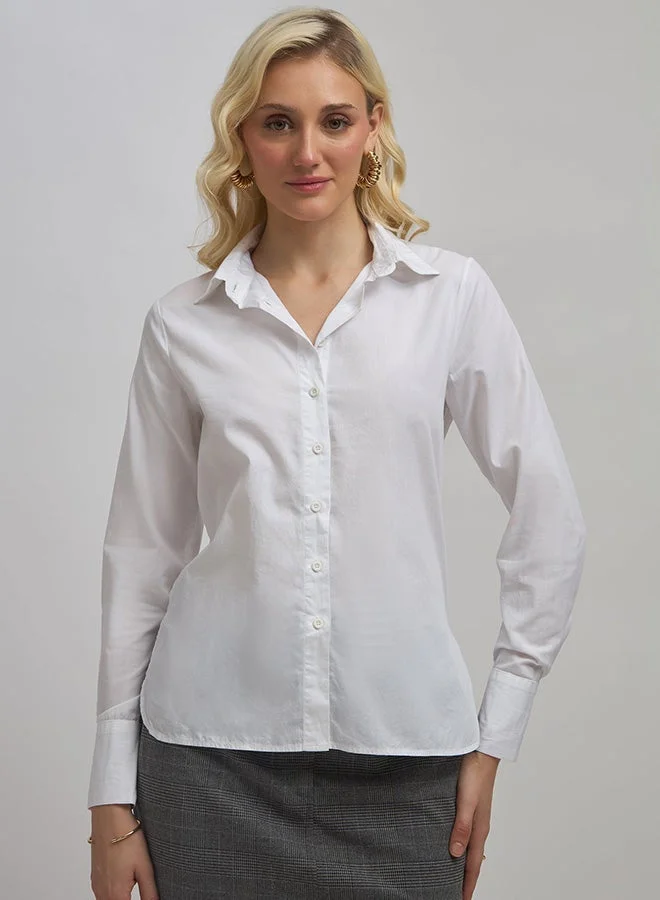 Solid Cotton Washed Utility Plus Size Shirt for Women