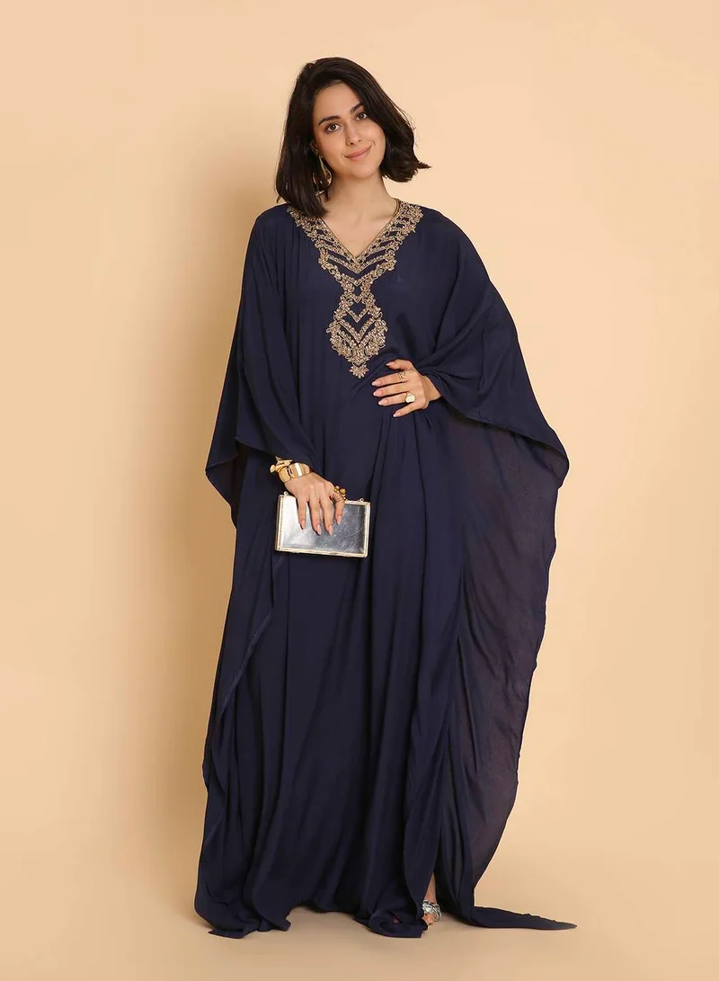 Styli Floral Printed Embroidered Belted Kaftan