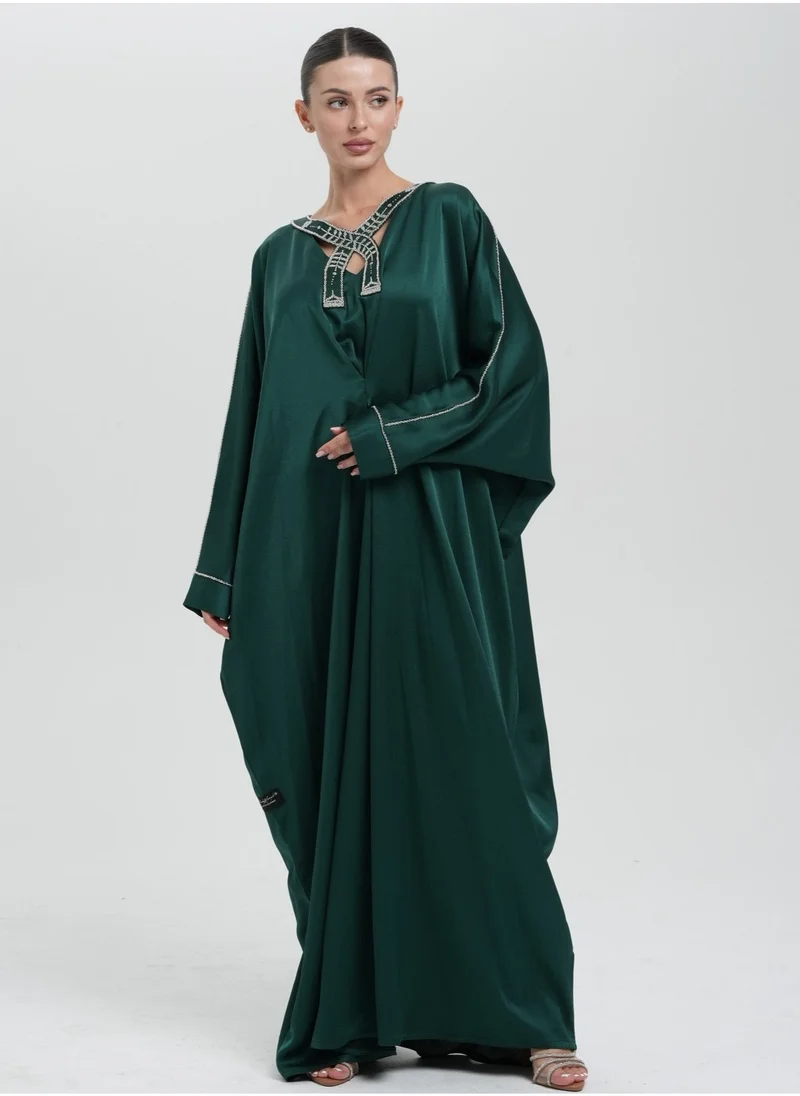 Styli Embroidered Notch Neck Jalabiya
