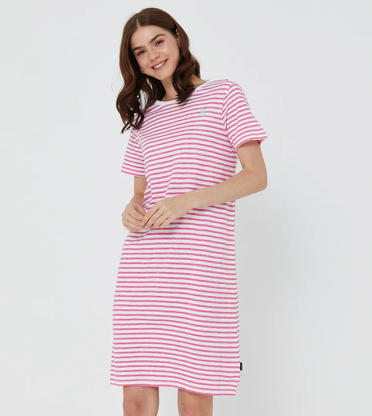 Printed Knee Length Shirt Belted Dress