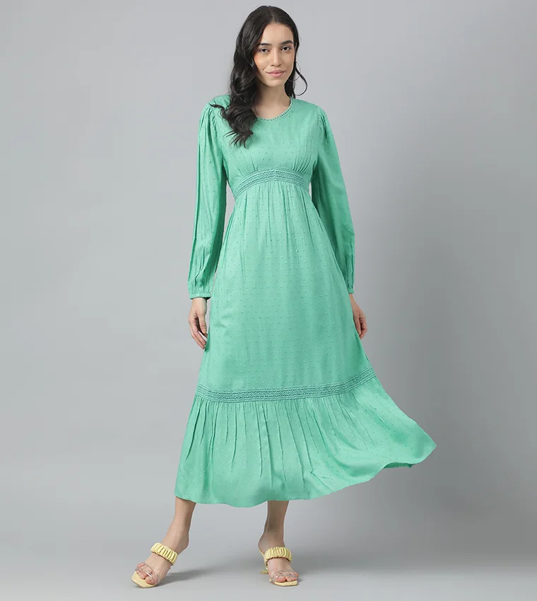 Women's Lilac Creased Midi Dress For Casual Wear | Square Neck | Short Sleeve | Pull On Closure | Plus-Size Dress Crafted With Comfort With For Everyday Wear