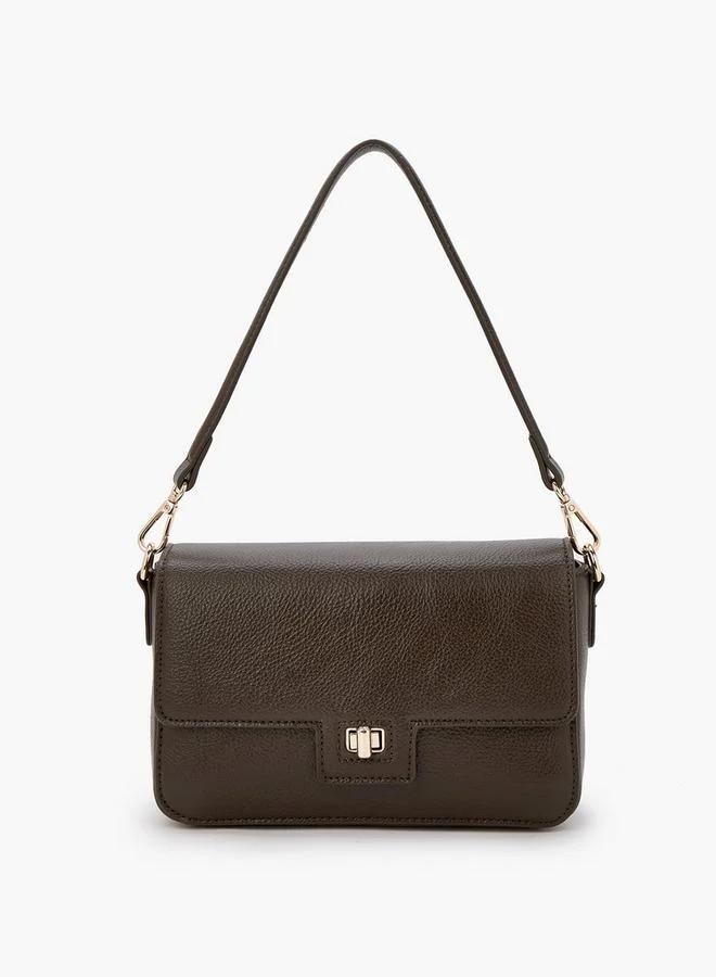 Textured Crossbody Bag with Detachable Strap and Button Closure