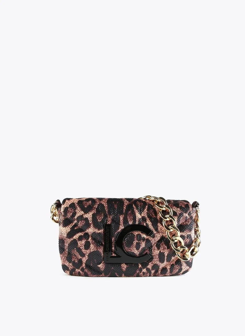 Women's Print Crossbody Bag with Button Closure and Chain Strap