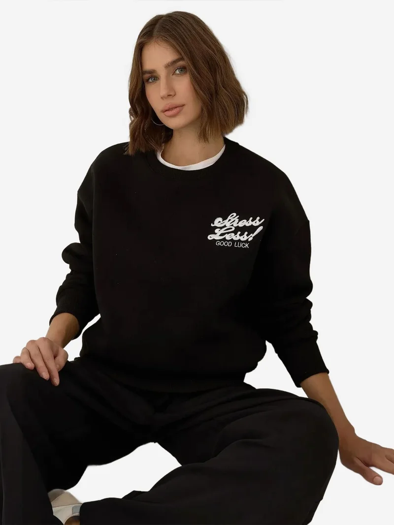 Globus Women Black Typography Printed Hooded Pure Cotton Pullover