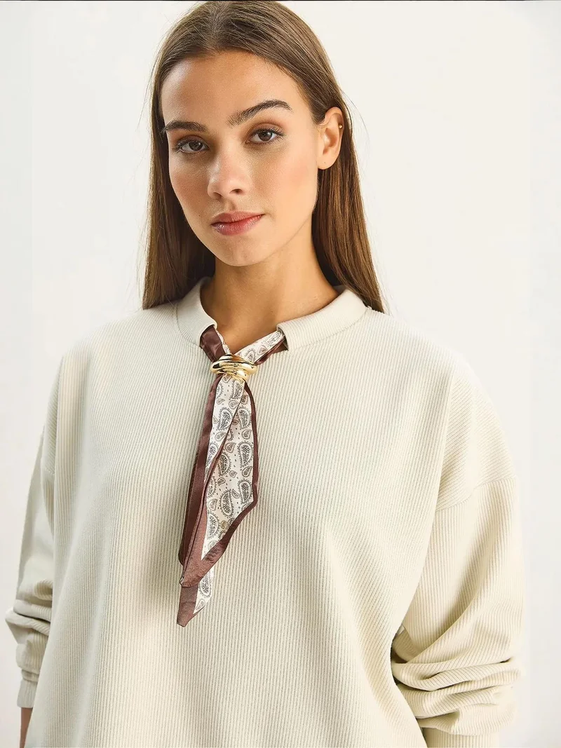 LUCCI Ribbed Printed Crew Neck Long Sleeve Sweatshirt