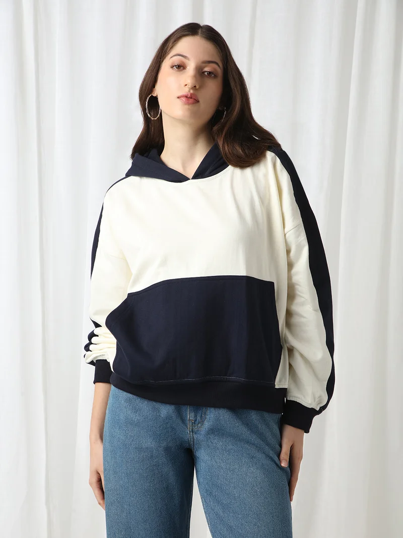 Women's Navy Blue Destroy Print Pullover Hoodie