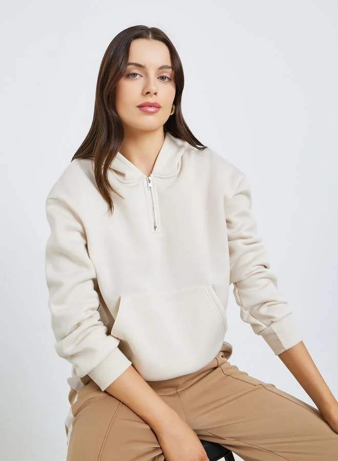 Women Brown Solid Fleece Half-Zip Front Sweatshirt