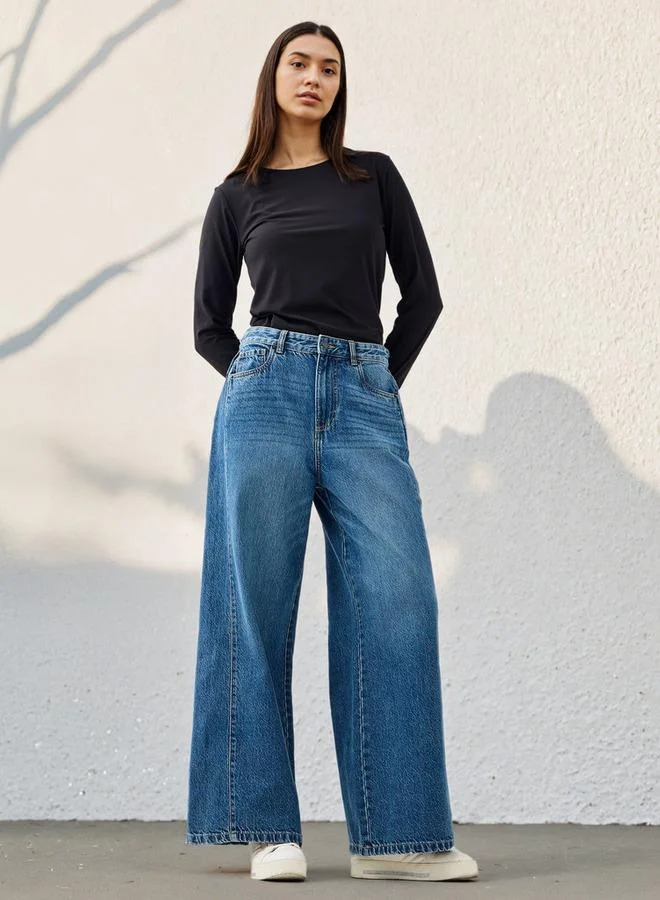 Styli Textured Square Neck Fitted Long Sleeve T-Shirt