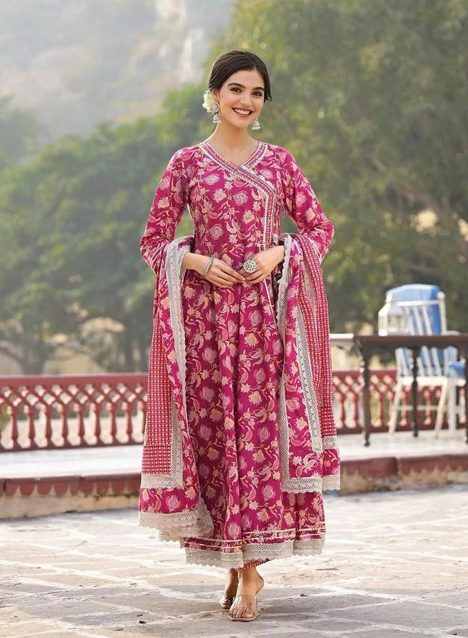 Ishin Floral Print Cotton Kurta with Trousers and Jacket Set