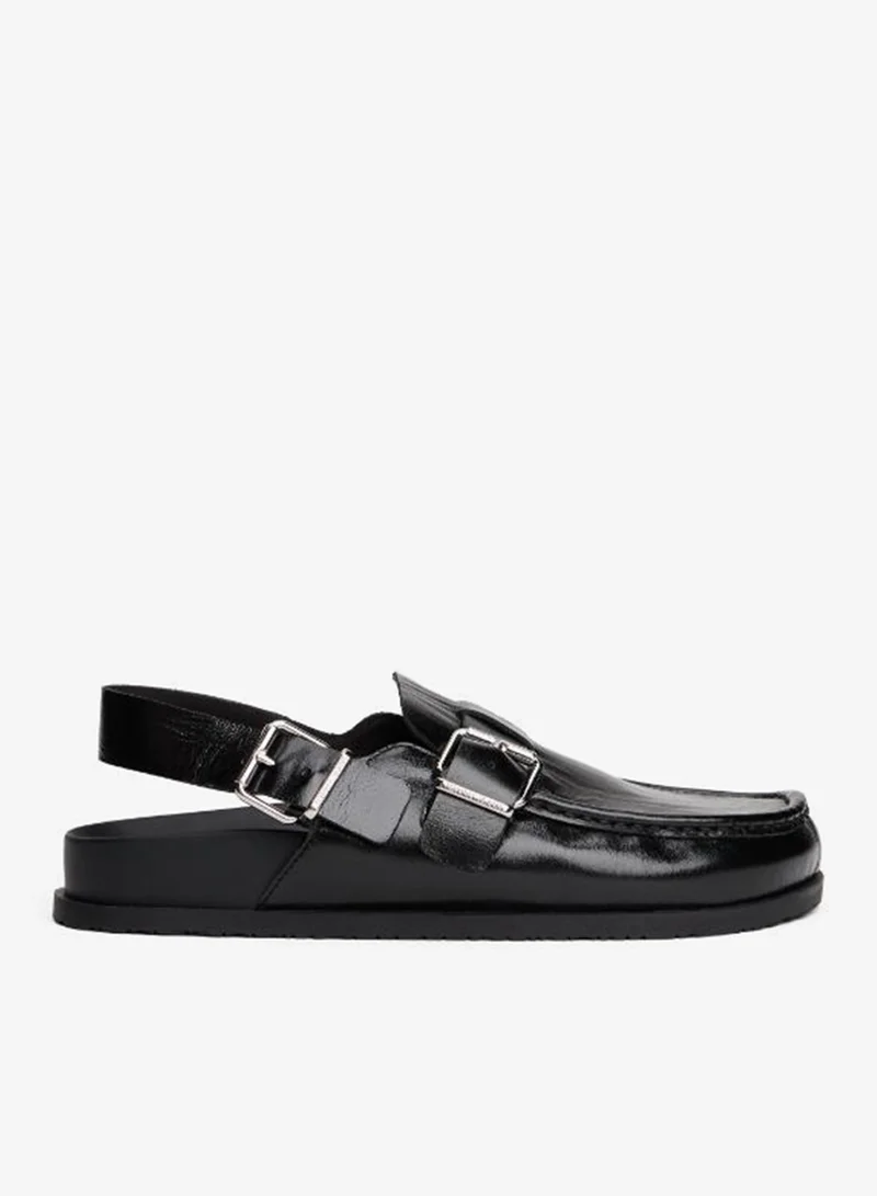 Crystal buckle detail, black mesh and pu upper. Stiletto heel