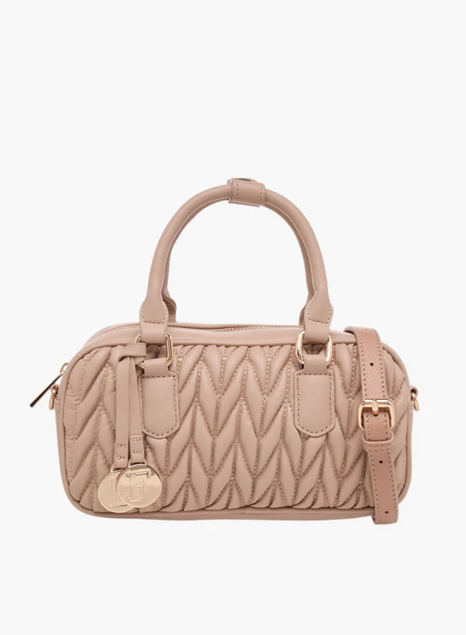 Textured Tote Bag with Double Handles and Detachable Shoulder Strap