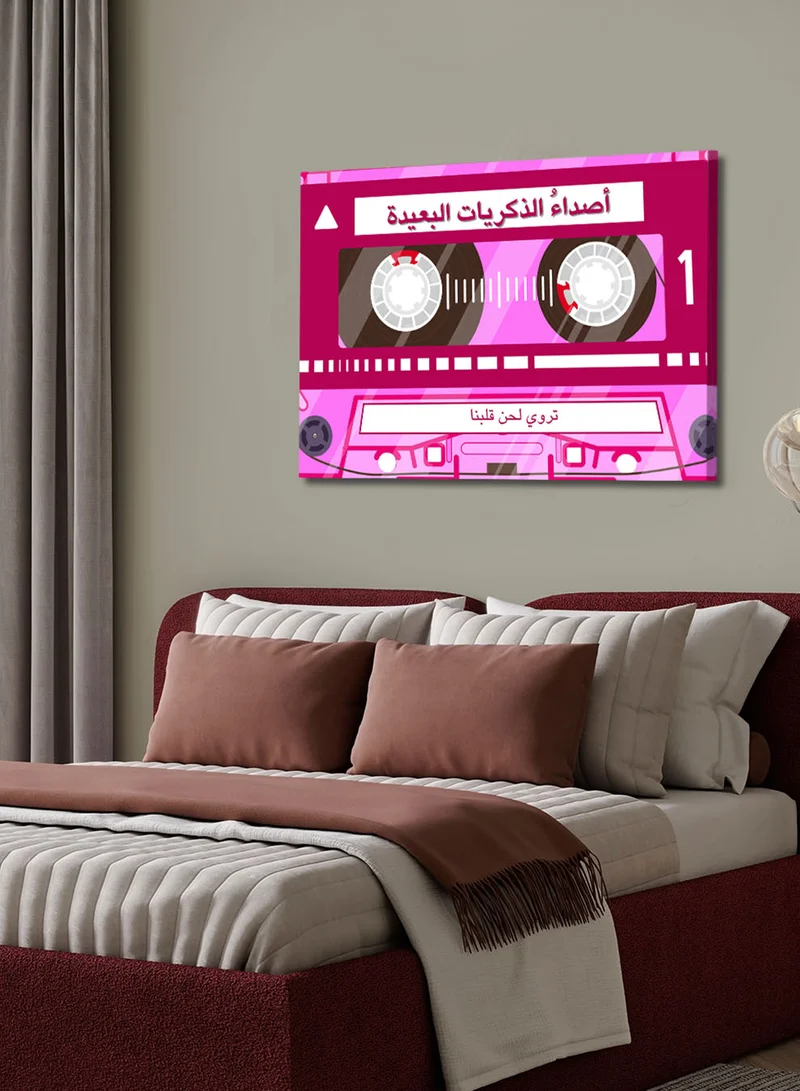 Canvas Wall Art Stretched Over Wooden Frame with Cassette Tape Classic Design