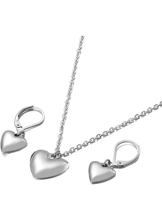 Women'S Stainless Steel Silver Plating Jewelry Set (Necklace + Earrings)