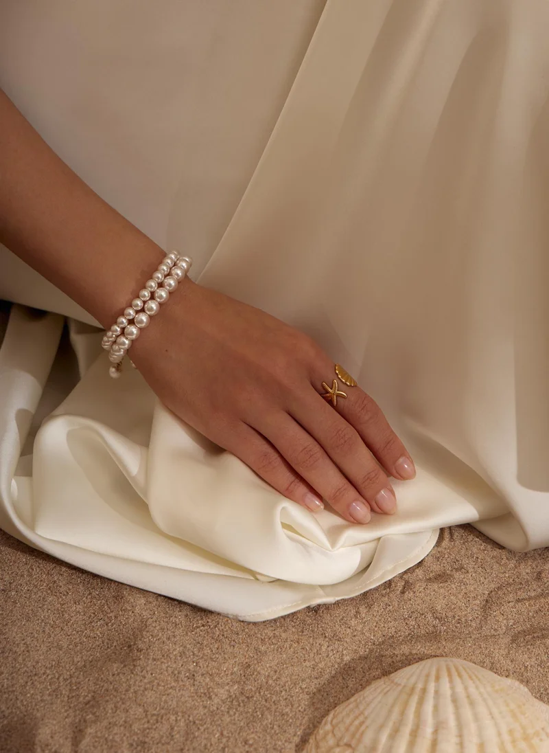 Wide golden ring with pearls in the centre