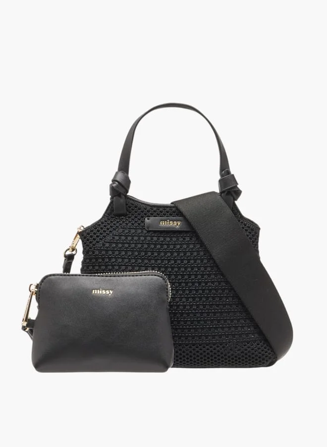 Women Missy Monogram Textured Tote Bag with Detachable Strap and Handles
