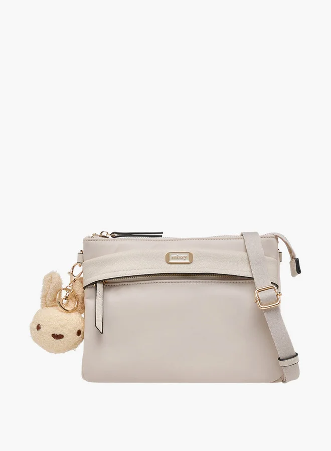 Women Panelled Crossbody Bag with Detachable Strap and Zip Closure