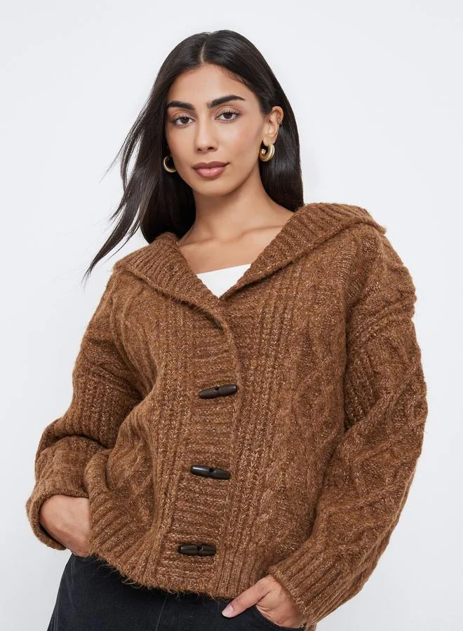 Styli Beige Regular Fit Fuzzy Yarn Cardigan