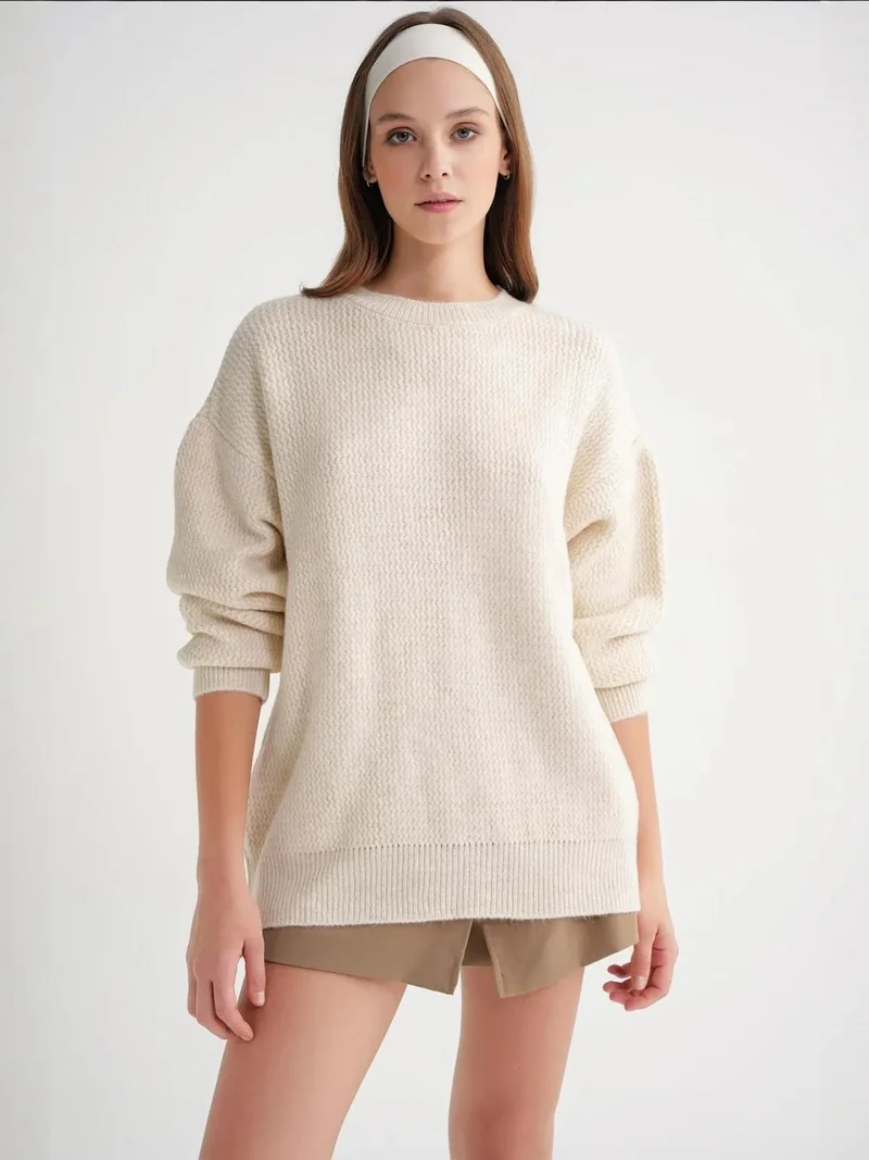 Mixray Oversized Ribbed Knit Sweater with Crew Neck