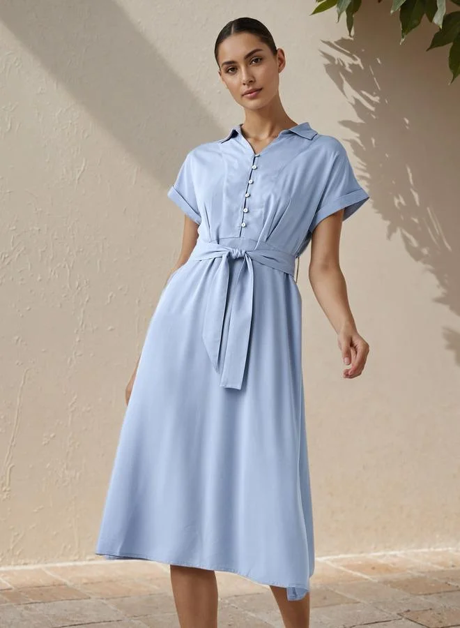 A-line Knee-Length Viscose Dress with Tie-Up Belt