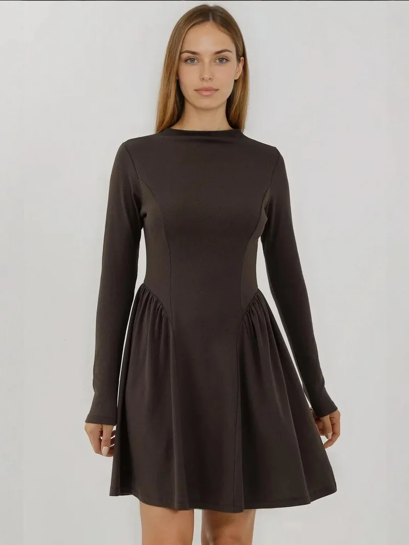 Waist Sitting Ribbed Mini Knit Dress with Zipper Collar