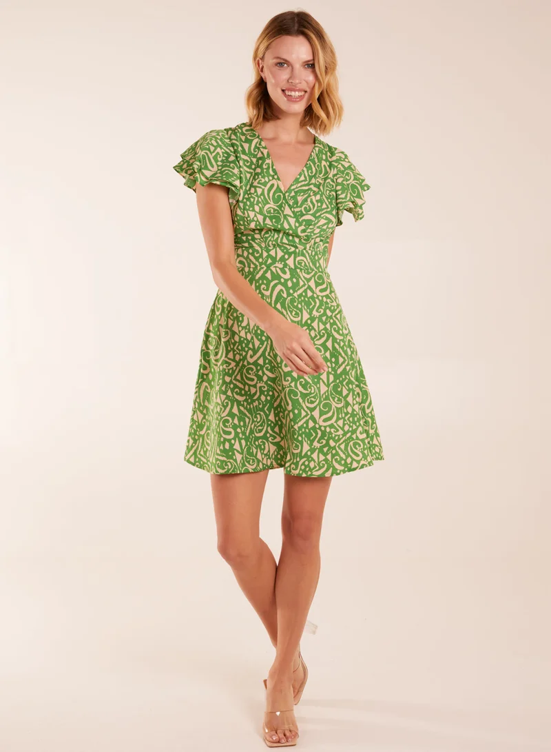 Aztec Wrap Ruffle Frill Sleeve Mini Dress