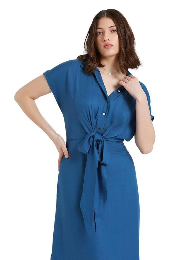 Blue Dress for Women - 100% Cotton, Regular Fit