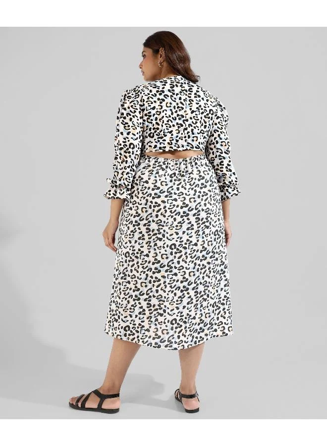Women's Multicolour Cheetah Cut-Out Midi Dress For Casual Wear | V Neck | Long Sleeve | Button Closure | Plus-Size Dress Crafted With Comfort With For Everyday Wear
