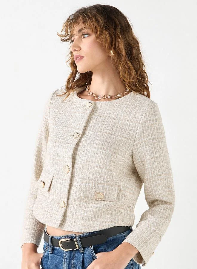 Iconic Textured Jacket with Long Sleeves and Pockets