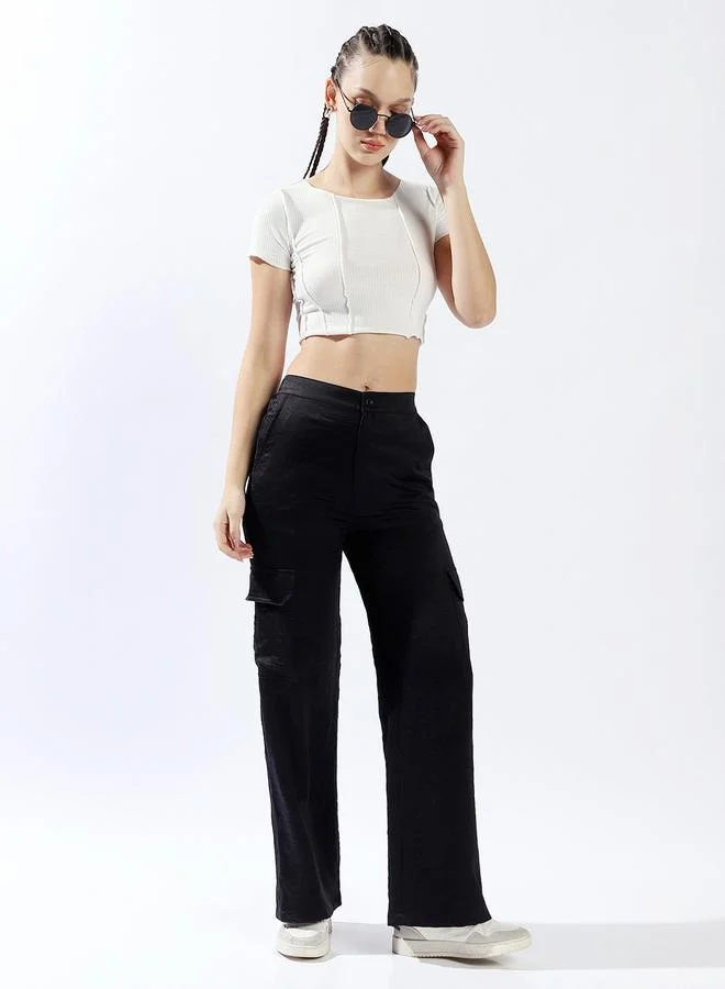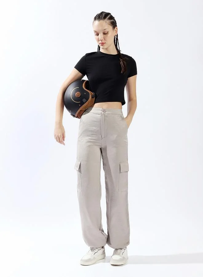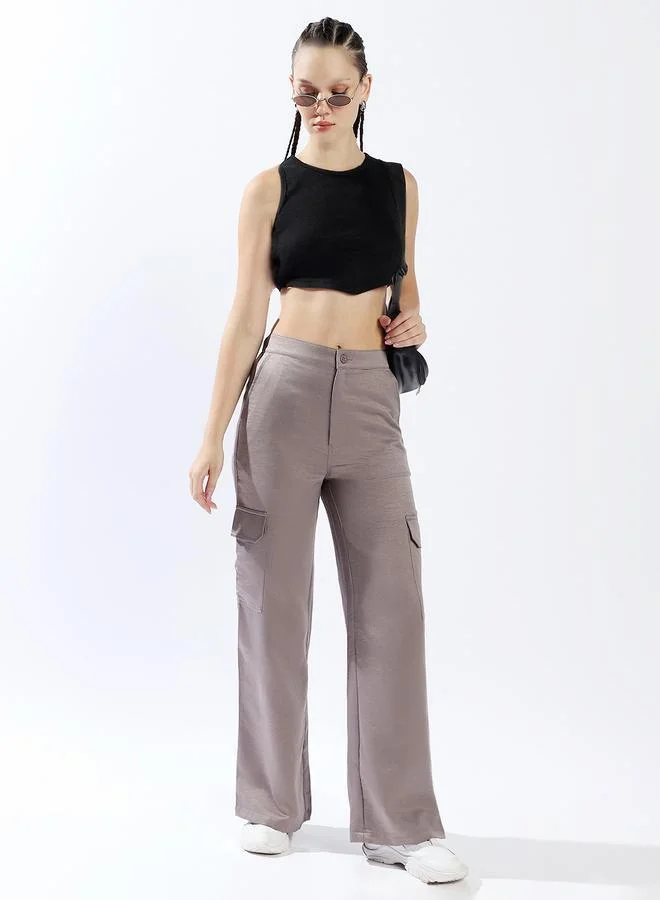 High Rise Straight Fit Cargo Trousers