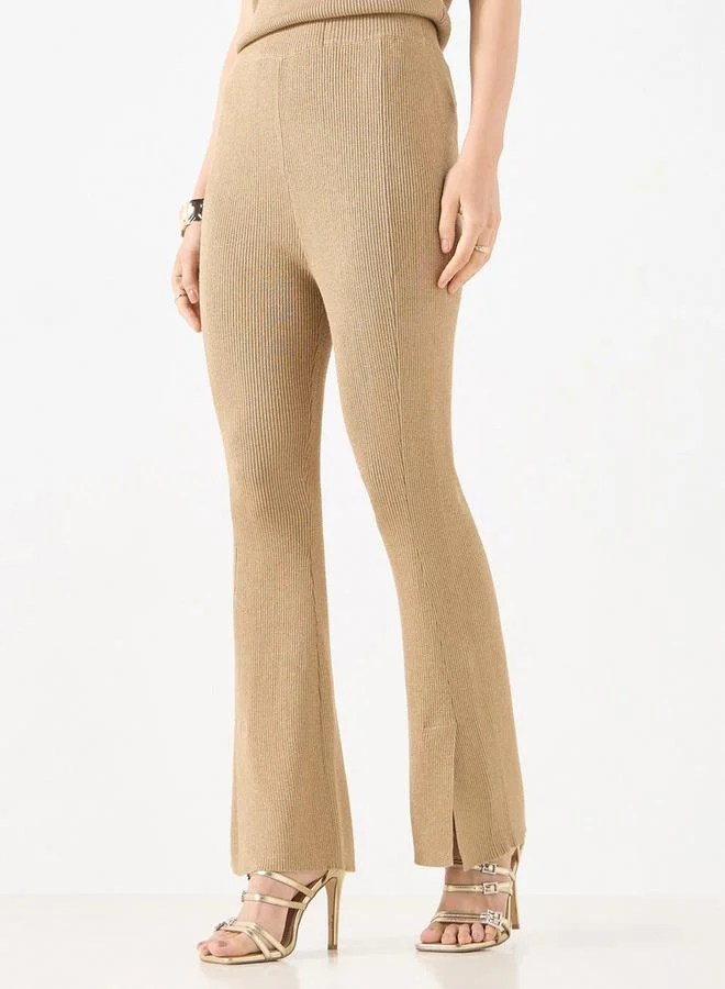 Iconic Regular Fit Textured Wide Leg Pants with Tie-Up Detail