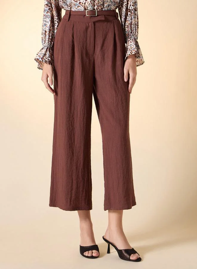 Iconic Solid Belted Wide Leg Pants with Pockets
