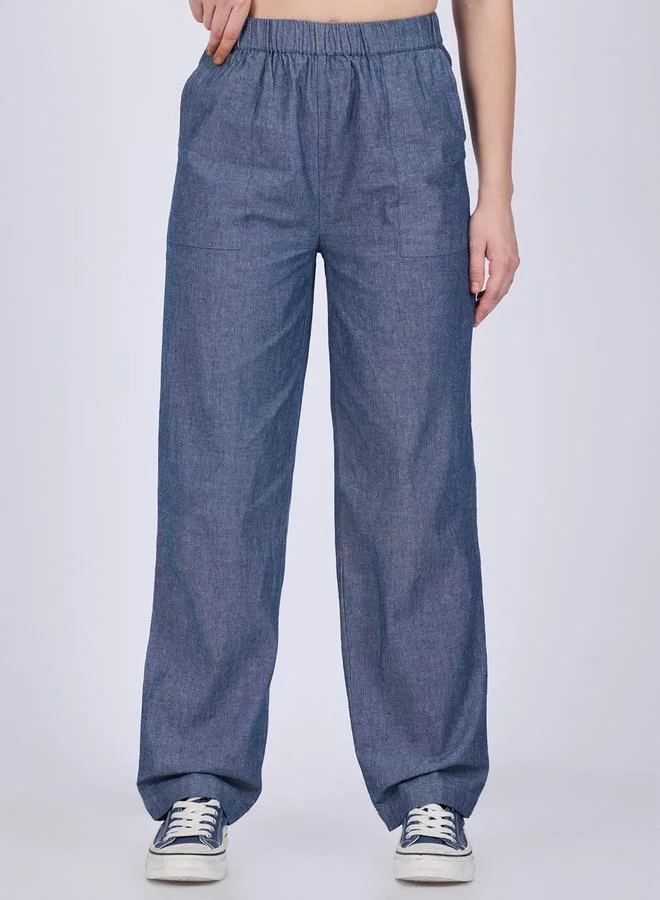 Blue High Rise Solid Trousers