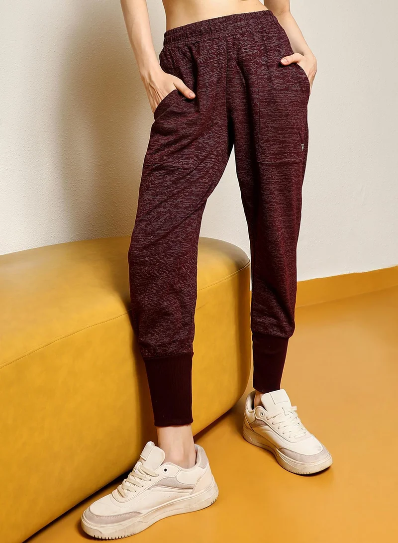Women's Maroon Red Heathered Trackpants For Casual Wear | 2 Pockets | High-Rise | Pull On Closure | Trackpant Designed With Comfortable Fit For Woman & Girls