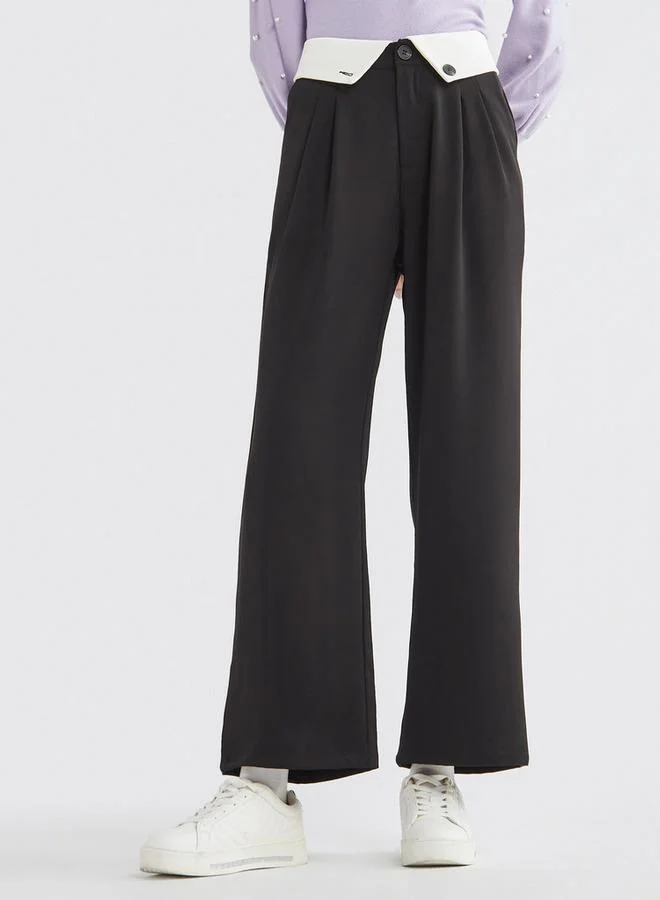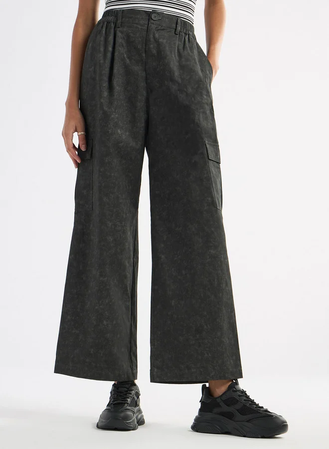 Solid Wide Leg Pants with Semi-Elasticated Waistband and Pockets