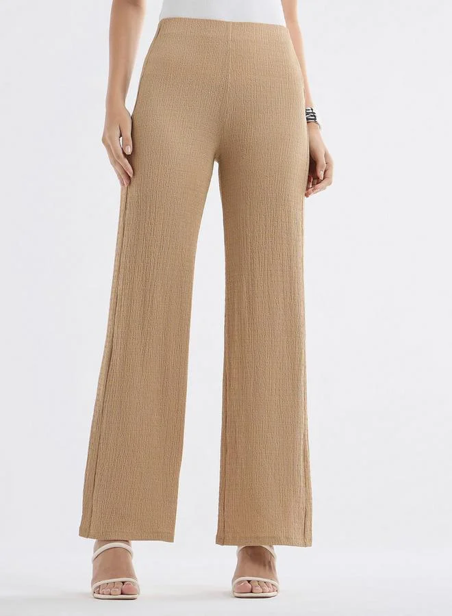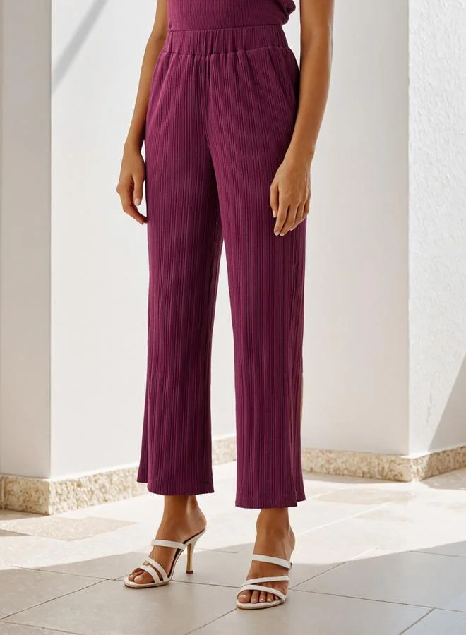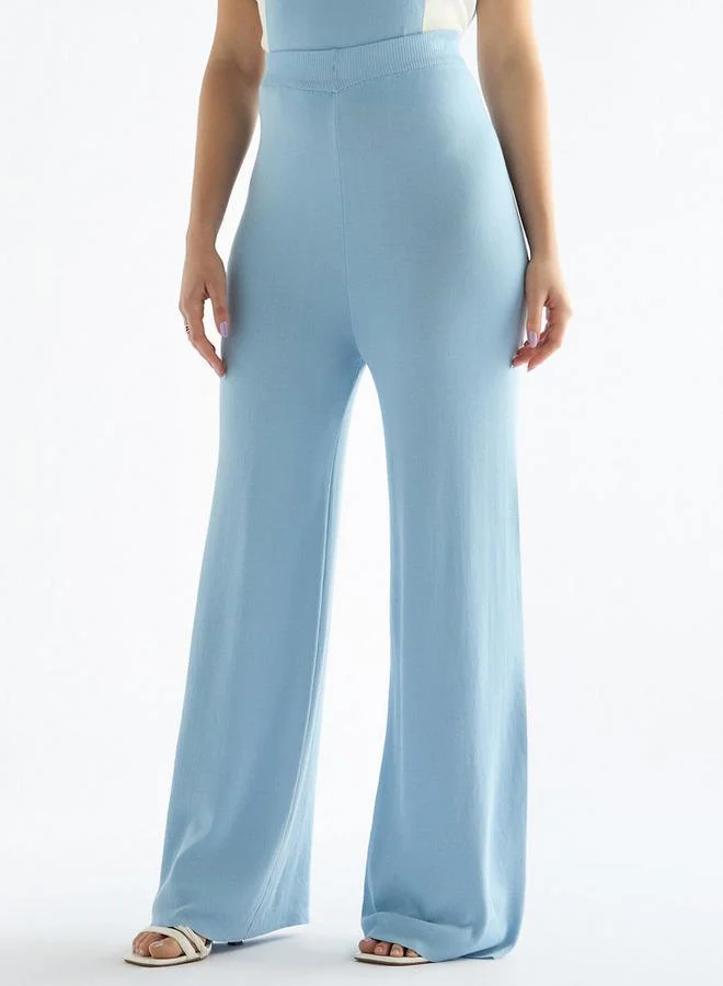 Solid Flared Pants with Flexi Waist and Slit Detail